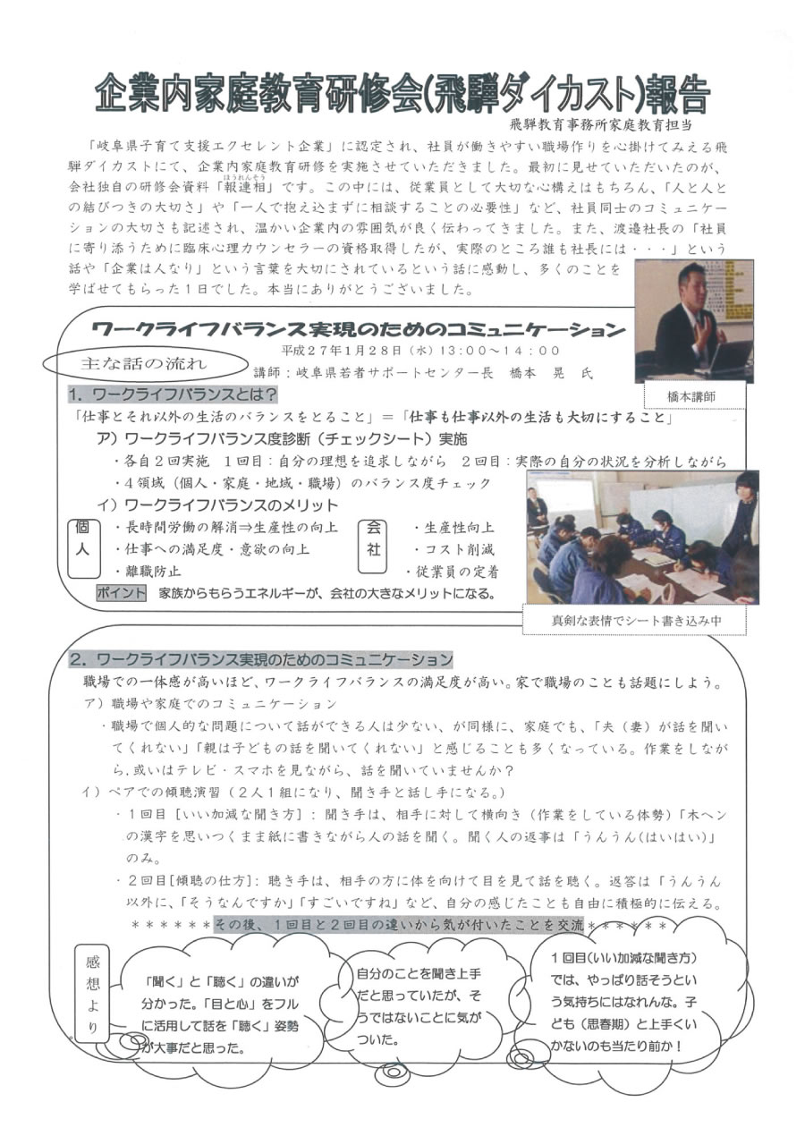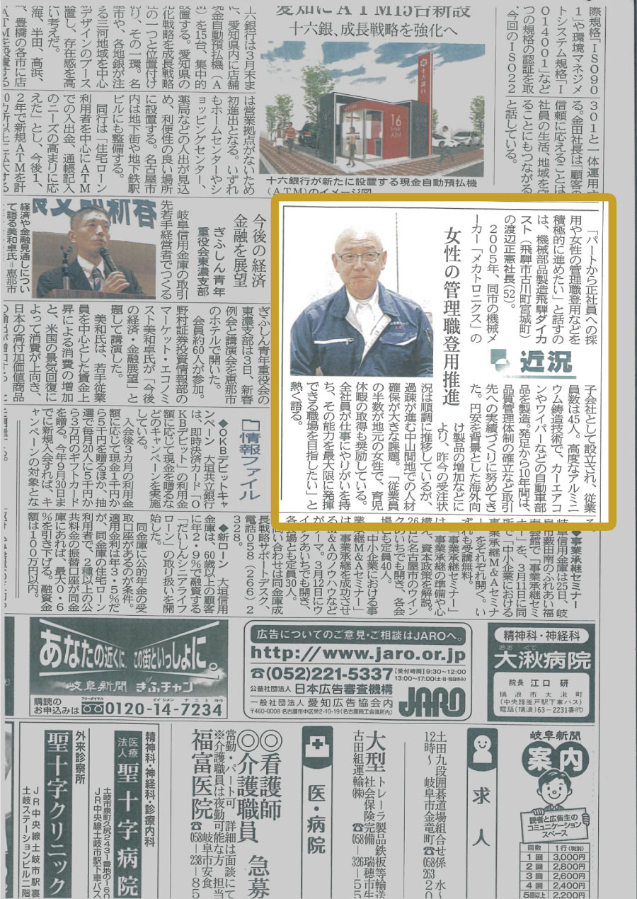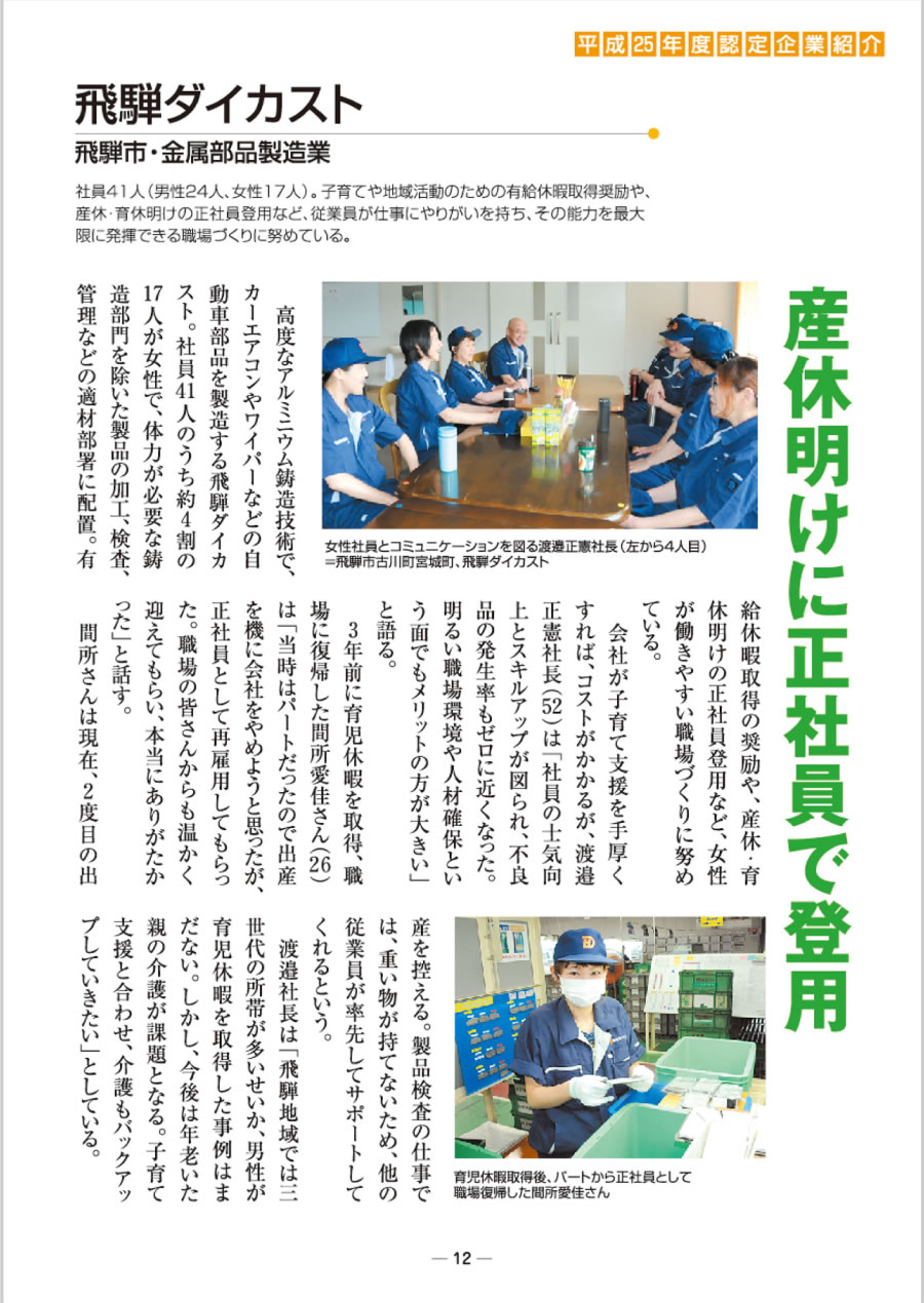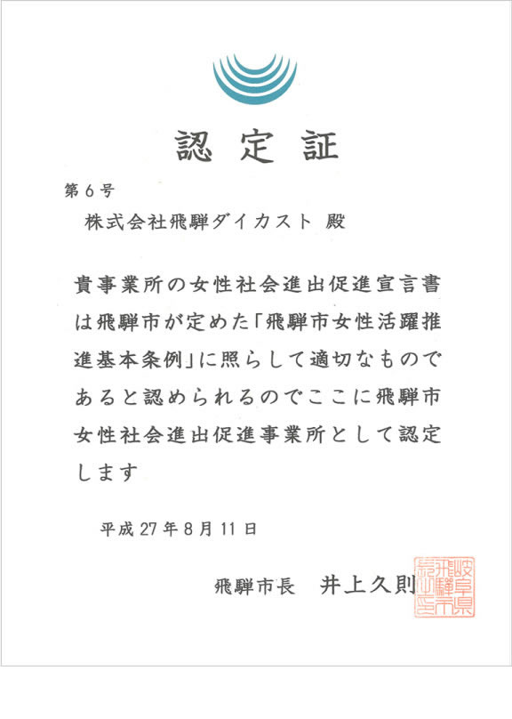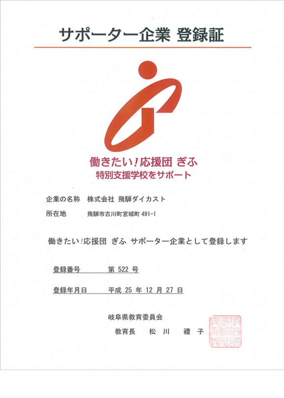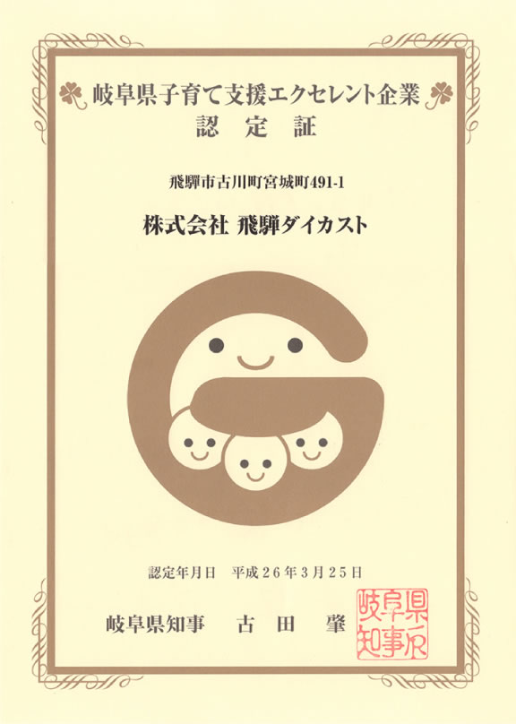| 2014年3月 | 岐阜県子育て支援エクセレント企業認定 |